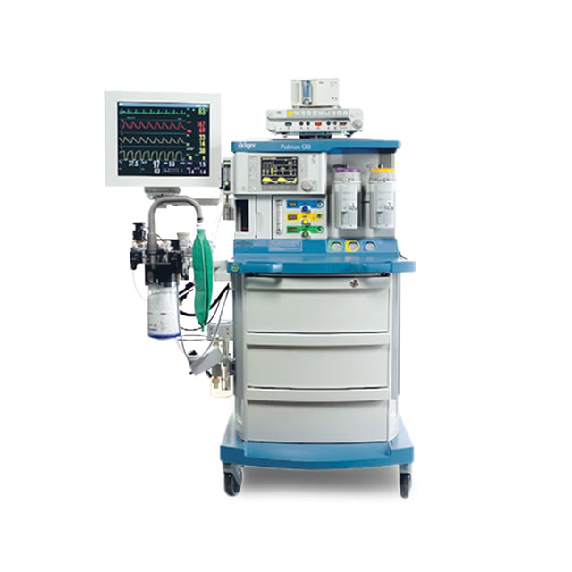 Drager Fabius OS is an anesthesia machine that has the E-Vent ventilator technology that delivers efficient ventilation to neonate, pediatric, and adult patients of varying acuity levels through its electronically driven and controlled piston ventilator that doesn't require gas. Its Innovian Anesthesia technology allows data to be documented electronically and its open-platform architecture enhances workflow streamline by allowing the device to communicate clinical data to hospital and anesthesia information systems. The Fabius OS has enhanced ergonomic features: table-top designs, 3 large drawers, front-face handles and front-panel access to all modes, and display rotary knob, which all give users convenience and improved productivity. It's capable of delivering safe and efficient low-flow anesthesia with fresh gas decoupling valve that creates an accurate tidal volume, precision piston ventilator, and actively heated breathing system. Even in cases of power interruption, manual ventilation can still be delivered, and a backup battery that can operate for 120 minutes can still deliver automatic ventilation.