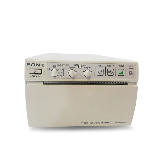 The Sony UP-895MD Video Printer is a greyscale thermal printer connects to a diagnostic equipment and prints images displayed on the video monitor. It uses a temperature compensation technology to produce stable A-7 sized printouts in approximately 3.9 seconds while it is in STD or NORM mode with 256 gradations of black and white. It can also identify video signals whether it is EIA, CCIR, NTSC, or PAL and intelligently adapts for better printout quality. It is built with compact and lightweight design for easy portability and to consume less space.