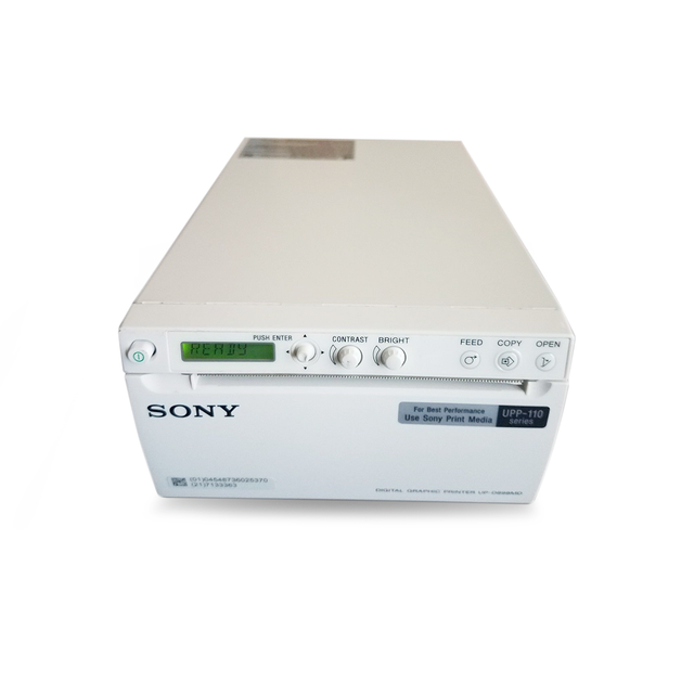 The Sony UP-D898 Video Printer is a light and compact thermal video printer designed for medical applications. While in high speed mode, it can easily produce A6-size printouts in less than two seconds. Its direct thermal printing technology and its 325-dpi resolution produce crisp print quality. At its front panel is a large LCD display and a jog dial, both work together for easy and simplified device operation. This function also grants access to many of its printer settings, while its LCD also displays error messages and other useful information.