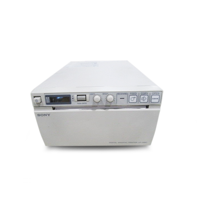 The Sony UP-897MD Video Printer is a medical grade thermal video printer for use during endoscopic procedures. It has high-speed printing capability and can produce A6-size printouts in approximately two seconds. In line with its speed, it combines its dye sublimation technology to its 325-dpi resolution to produce superb print quality. For easy and simplified device operation, it is equipped with a front LCD display panel and jog dial. The LCD display provides access to many of its functions, and also shows error messages and selected print paper type which users can easily confirm.