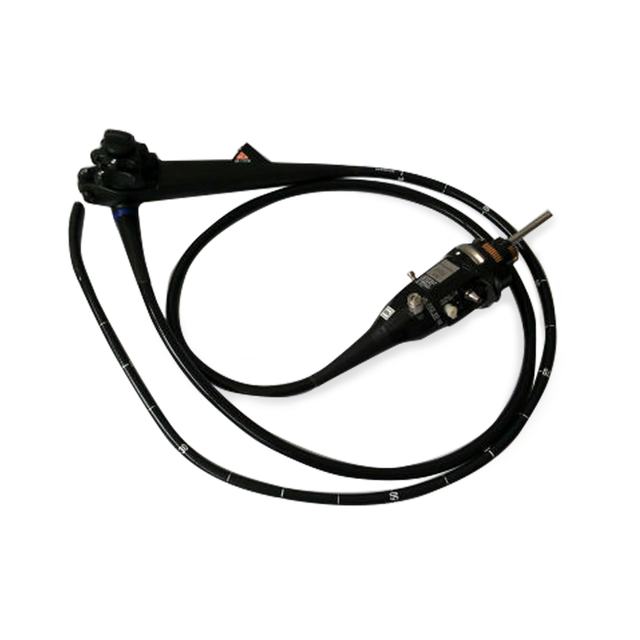 The Olympus GIF-1TH190 is a therapeutic video gastroscope used in hospitals and clinics for therapy and gastrointestinal endoscopy applications. Capable of delivering HDTV image quality and featuring a slim design and a Close Focus system, it is ideal for providing high quality visualization and accurate observation of mucosal morphology, vascular patterns, and blood vessels. It uses Narrow Band Imaging (NBI) technology which provides twice the viewing distance for the scopes, while also creating a visual contrast in mucosal morphology, vascular patterns, and blood vessel form even in cases of Barrett's esophagus. Its Close Focus system also allows for close observation of the mucosal surface without the need for electronic magnification. Its slim design strikes an improved balance of size and performance, having a distal end with outer diameter measuring 10.0 millimeters, an insertion tube with outer diameter measuring 10.9 millimeters, an instrument channel with inner diameter measuring 3.7 millimeters, a 4-way angulation system, and a broad 140-degree field of view. The GIF-1TH190 has a waterproof one-touch connector devised to reduce effort for setting up the device, and it can be entirely submerged to eliminate the need for a water-resistant cap and the associated risk of costly repairs due to accidental submersion.