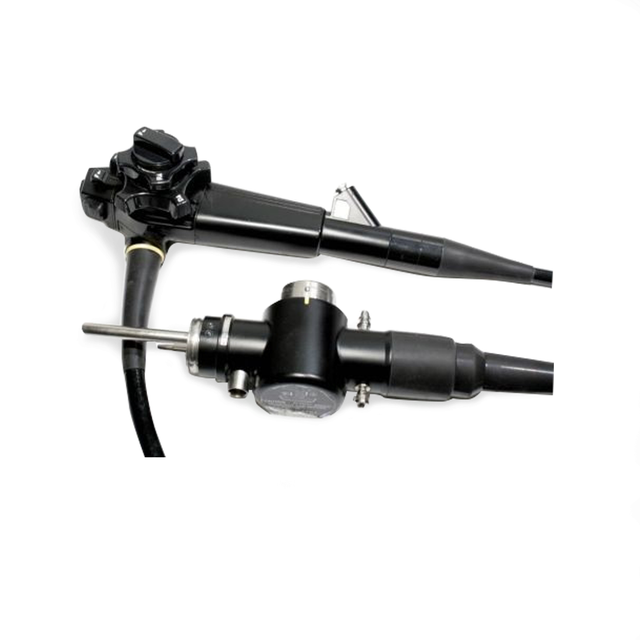 The Olympus GIF-V2 is a video gastroscope used for gastrointestinal endoscopy applications in hospitals and clinics. It delivers exceptional image quality and features a narrow insertion tube and instrument channel, a broad field of view, and an ergonomically-designed grip. It has an insertion tube with a diameter of 9.8 millimeters, an instrument channel with a diameter of 2.8 millimeters, and a working length of 1030 millimeters. It also has a 4-way angulation and a 120-degree field of view which permit a complete and accurate observation within the upper gastrointestinal tract. These features make it well suited for expediting accurate observations in a manner that is more convenient and comfortable for patients by reducing anxiety, distress, and discomfort. It is equipped with an ergonomic grip which enhances its maneuverability, while its readily accessible controls and user programmable switches significantly improve its operability. The GIF-V2 is compatible with the Olympus CV-100, CV-140, CV-160, and CV-180 video processors and Olympus CLV-10, CLV-160, CLV-180, CLV-U20, and CLV-U40 light sources.