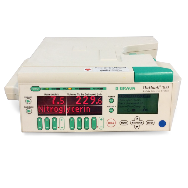 The B Braun Outlook 100 Infusion Pump promotes safety for all healthcare providers by ensuring that the right patient is given the correct medication and proper dosage at a specific time. This precision is balanced with flexibility - it allows authorized users to customize dose limits as the need arise. Each dose entry is compared to a pre-set dose limit, and its DoseGuard software issues a visual warning if an infusion setting goes beyond the safety parameters provided by the healthcare facility.