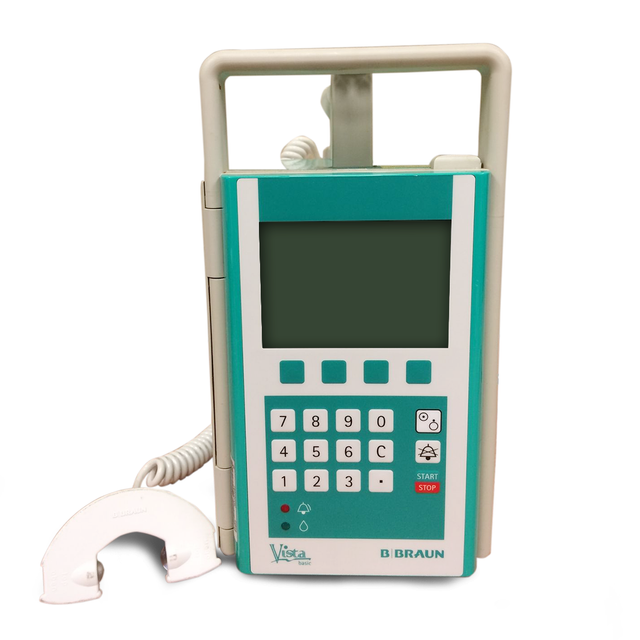 The B Braun Vista Basic Infusion Pump is a compact instrument that is simple and easy to use. Its quick start-up function saves time for continuous infusions by just requiring minimal information (rate and volume). Prompts are also provided for easy navigation through the programming process. Its ergonomic design is lightweight yet durable, and makes it ideal for homecare use.