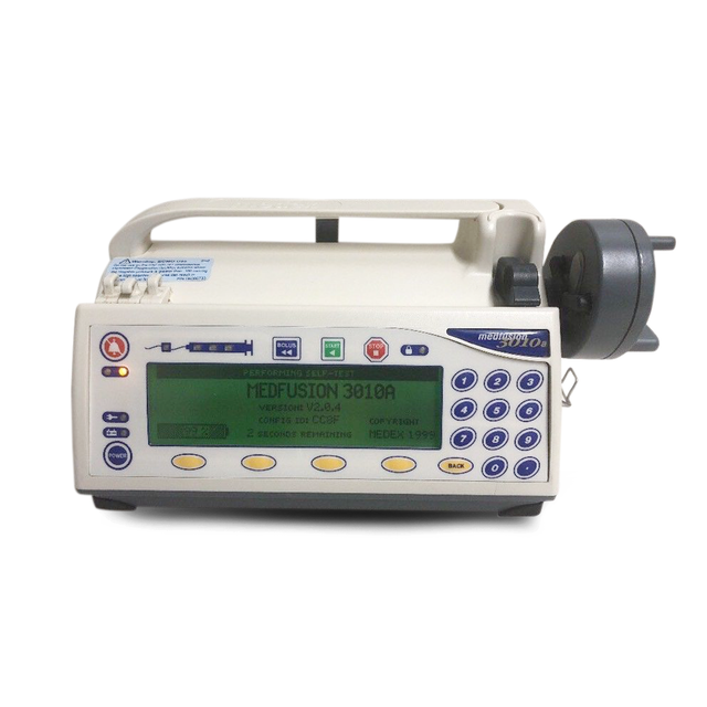 The Medfusion 3010a Syringe Pump is a mobile syringe pump that runs either on AC power of on rechargeable batteries. It is specifically designed to work in static magnetic fields and may be used in MRI rooms. This instrument features 16 infusion modes with a software that is easy to use and navigate.