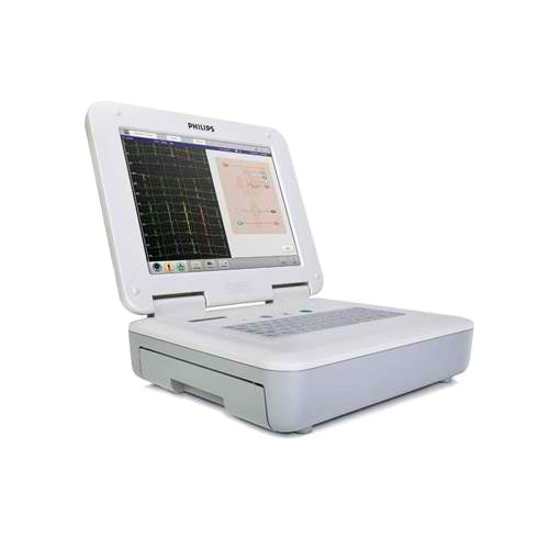 Philips Cardiodynamics Pagewriter TC70 features the DXL 16-lead ECG algorithm and a STEMI diagnostic aids that includes interpretations for Critical Values, ST Maps, and Culprit Artery Identification. Critical Values results are boldly displayed and printed to notify the user in case of urgent patient concerns. A sequence of lights prompts the user when to start the ECG procedure, and an automated ECG report sequence with wireless data transfer seamlessly streamlines workflow. It can connect wirelessly through LAN protocols like 802.11 and WPA2 to secure staff and patient information. Its 3-in-1 Trident lead wires reduce wire tangling and its LeadCheck supports correct lead placement. It can operate on either power supply or battery.
