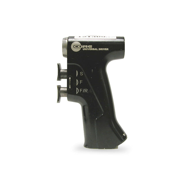 The Stryker 5400-99 CORE Universal Driver is a dual-trigger surgical tool used for small bone surgical procedures. It is a modular electric power tool which can be equipped with the 4100 Series attachments and can be operated by the TPS and Core Consoles. While it can be operated by the TPS, the Stryker 5400-99 CORE Universal Driver has forty percent more torque and one hundred percent more power than the TPS. The ergonomic design of this Universal Driver allows for a more controlled and precise surgical procedure to be performed by surgeons specializing in small bone procedures