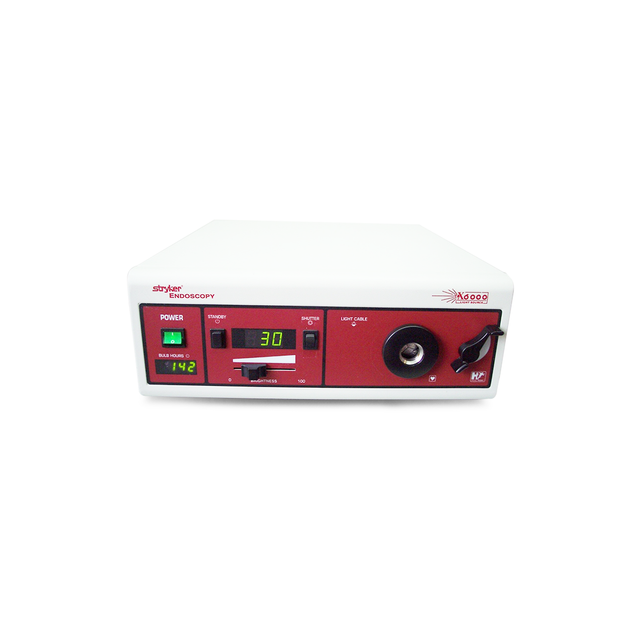 The Stryker X6000 220-185-000 Endoscope Light Source is designed to work with Stryker Endoscopic Imaging Systems, providing illumination to surgical sites. It can meet the demands of progressive scan technology, producing high definition images critically needed by surgeons during delicate procedures. With the use of proper light cable and adapters, it can connect to any flexible or rigid endoscope.